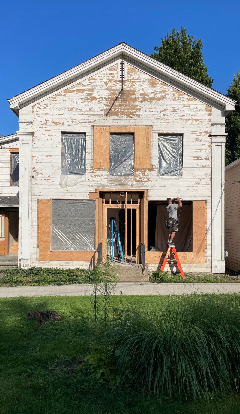 Heide and Rafe purchased the building in the fall of 2023 and kicked off the project with an extensive demolition. Every layer removed exposed another generation of renovations. Fully gutted and ready for a comprehensive overhaul, this stately village structure is poised for resurrection.